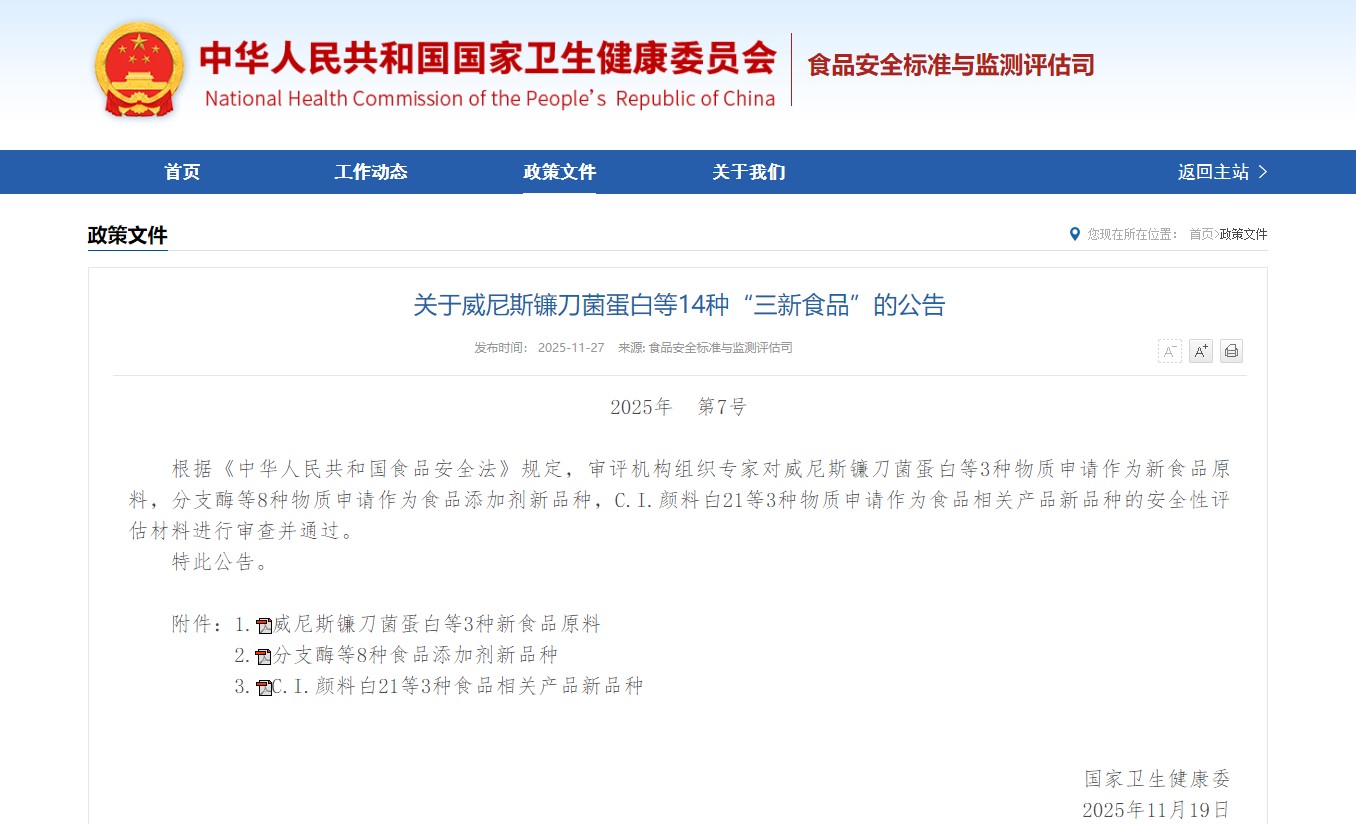 [1] Coimisiún Sláinte Náisiúnta Daon-Phoblacht na Síne.Fógra ar 14 "Trí Bhia Nua" lena n-áirítear Próitéin Fusarium Veinéiseach (2025, Uimh. 7).