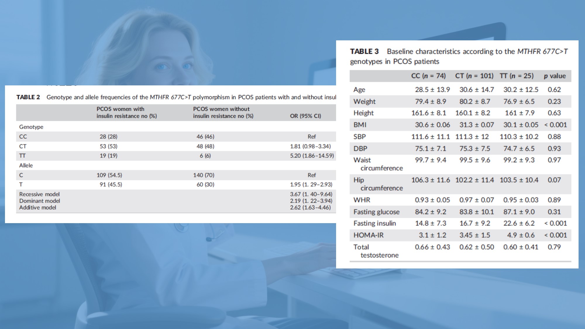 Mhol an fhoireann go n-áireofaí *MTHFR* géiniteach tástáil i measúnú riosca meitibileach luath do PCOS, rud a thugann le tuiscint go luath d'fhéadfadh idirghabháil i mínormáltachtaí meitibileachta folate cuidiú le diaibéiteas a chosc.Léiríonn sé seo spota dalla a ndéantar neamhaird de go coitianta: tá difríocht idir daoine aonair a gcumas folate a mheitibiliú. Ní féidir le cuid acu, mar gheall ar ghníomhaíocht íseal einsímí é a thiontú go héifeachtach; folate a scaiptear san fhuil gan a bheith úsáidtear. Do mhná le PCOS atá géinitíopa **TT** nó **CT**, ag baint úsáide as traidisiúnta féadfaidh **aigéad fólach** sintéiseach torthaí laga a thabhairt – mura n-ardaítear folate inúsáidte leibhéil agus b’fhéidir brú meitibileach a chur leis.---