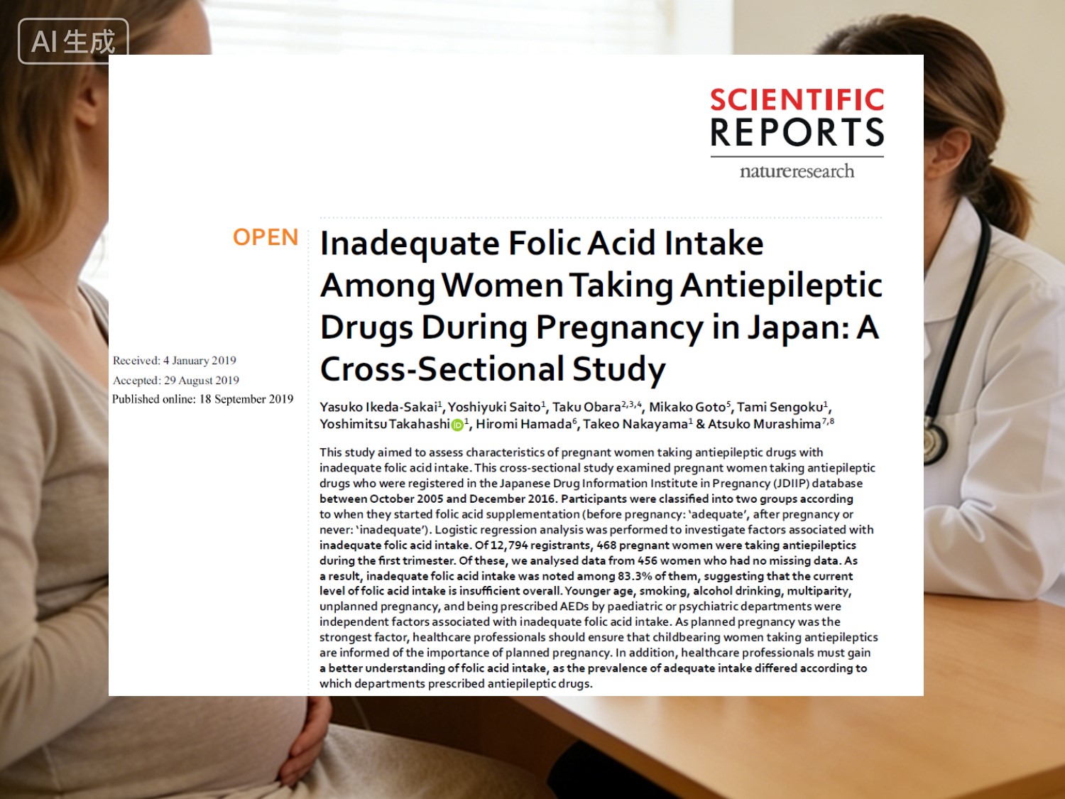 Staidéar trasghearrthach Seapánach a foilsíodh iTuarascálacha Eolaíochta(Punann dúlra, 2019) suirbhé ar 456 bean torracha ag glacadh AEDs: